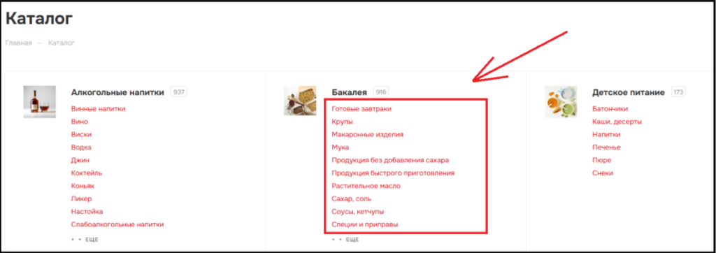• Перед вами откроется список всех категорий (например, «Наше производство», «Товары для дома», «Бакалея»). Нажимайте на ту, что вам интересна. (рис.2)